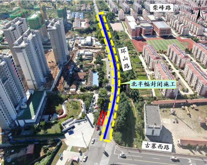 二、占用道路:占用環(huán)山路(柴峰路路口至古寨西路路口)北半幅道路。